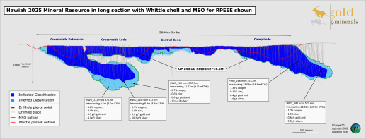 Long section showing extent of VMS mineralisation and resource classification in the 2025 block model