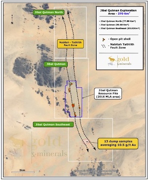 The Jibal Qutman Exploration Licences ("ELs") are located in the central southern region of the Arabian-Nubian Shield and cover an area of 270km2. The ELs overlie more than 30km of the prospective Nabitah-Tathlith Fault Zone, a 300km-long structure with over 40 gold occurrences and ancient gold mines.